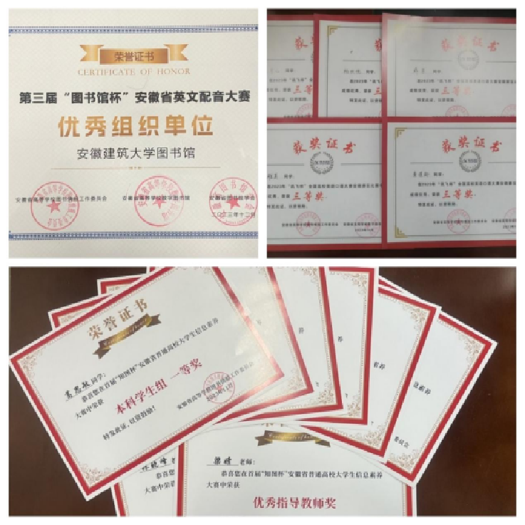 “一批赛事”指的是各类校园竞赛活动。图书馆每年会自行举办或组织参与数十场不同类型的竞赛,竞赛主题涵盖了信息检索、诗歌朗诵、英文口语、电影配音等多个学生感兴趣且锻炼学生综合能力的领域,参赛学生多次获奖,图书馆多次获优秀组织单位。形成了“以赛促学、以赛促教、赛教融合”的学生培养体系。