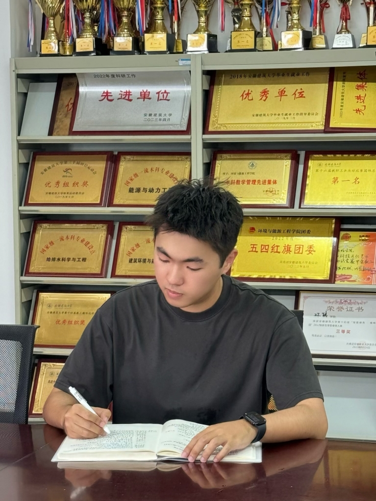 作为一名共产党员,周正涵展现出“多面手”的素质和能力。获得了第六届“深水杯”全国三等奖,荣获2022-2023年度一等奖学金、“长丰供水”社会奖学金等多项荣誉。同时,他获评学校“优秀共产党员”“优秀研究生干部”“三好研究生”及“优秀团干”等荣誉称号。