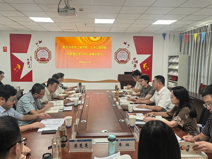 本网讯 9月17日,电子与信息工程学院与土木工程学院以联合学习形式,在紫云路校区徽风楼1112会议室召开党委理论学习中心组集中学习会议。会议由电信学院党委书记张润梅主持,两院党委理论学习中心组成员全员参会,学校党委副书记、校长蔡国军出席会议并作点评指导。