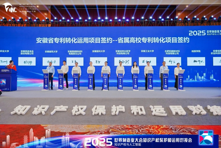 本网讯 9月21日,由安徽省人民政府主办、省市场监督管理局承办的2025世界制造业大会知识产权保护和运用对接会在合肥召开。对接会深度聚焦安徽省十大新兴产业和未来产业,汇聚国内外制造业和科技型龙头企业、顶尖高校和研究机构等多方资源,搭建成果转化对接与合作平台。