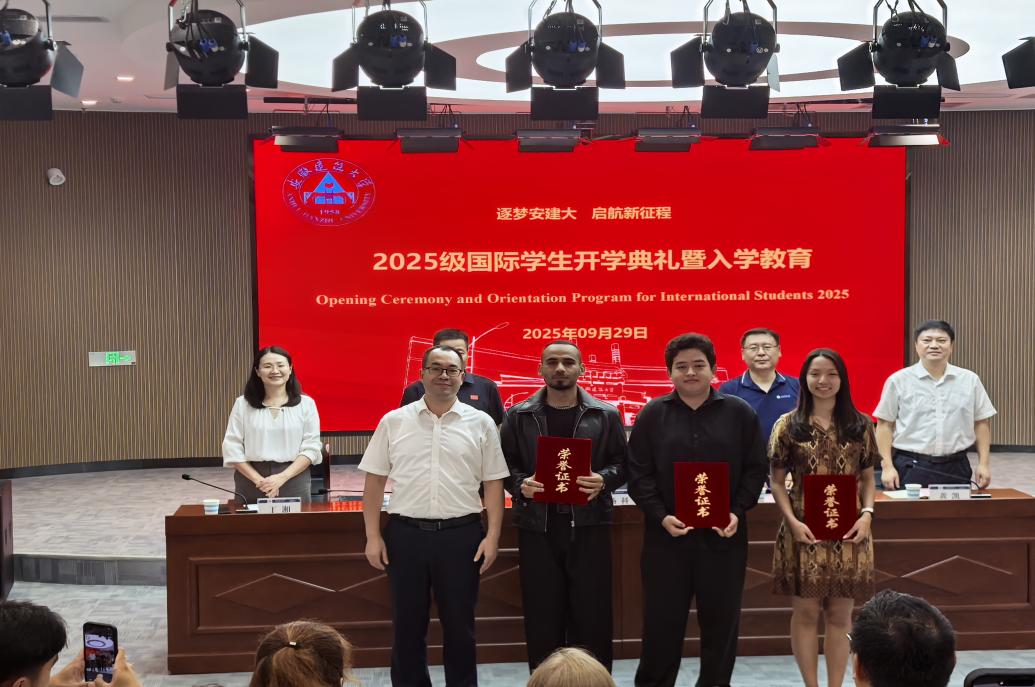 典礼特别设置了2024级国际学生表彰环节。 “跨文化之星奖” “学术卓越奖”“校园友谊大使奖”“文体贡献奖”四项荣誉的颁发,不仅是对优秀国际学子过去一年努力的高度肯定,也为新生们树立了身边的学习榜样。简朴而庄重的颁奖仪式将现场气氛推向高潮,象征着安建大国际学生教育中鼓励全面发展、弘扬积极向上的育人导向。