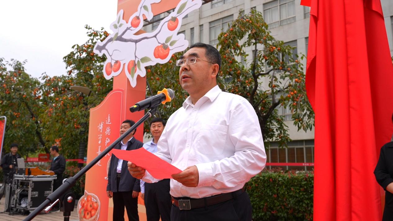 开幕式上,蔡国军发表了热情洋溢的致辞并宣布2025年“柿柿如意”文化活动月开幕。他指出,柿子有吉祥如意的象征,举办“柿柿”如意柿子文化活动月是学校深化“五育并举”、丰富校园文化内涵的重要实践,希望广大师生以柿子为媒,在劳动中体悟价值,在文化中滋养心灵,让“小柿子”承载“大教育”。以本次文化节为契机,充分发掘校园特色资源,打造富有建大特色的校园文化IP。
