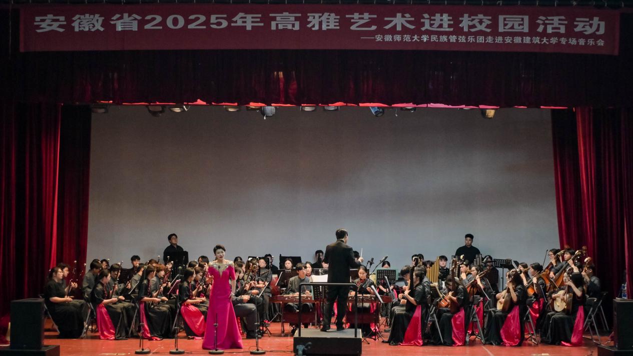 本网讯 近日,由安徽省教育厅主办的“安徽省2025年高雅艺术进校园活动”在学校大学生活动中心顺利举办。安徽师范大学民族管弦乐团受邀为现场400余名师生带来了一场高雅的视听盛宴。