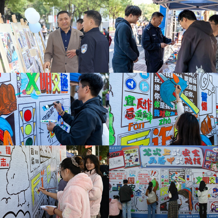 校领导认真听取主办方相关负责人对活动形式的介绍,同时对同学们将艺术创意与安全主题相结合的能力表示赞赏,对这种寓教于乐的安全教育新模式给予了高度评价。在热闹的“安全知识涂鸦区”,蔡国军欣然拿起画笔,与同学们一道在长卷上挥毫创作,绘制出寓意平安的图案,以实际行动诠释了“师生同心、共筑安全”的理念。