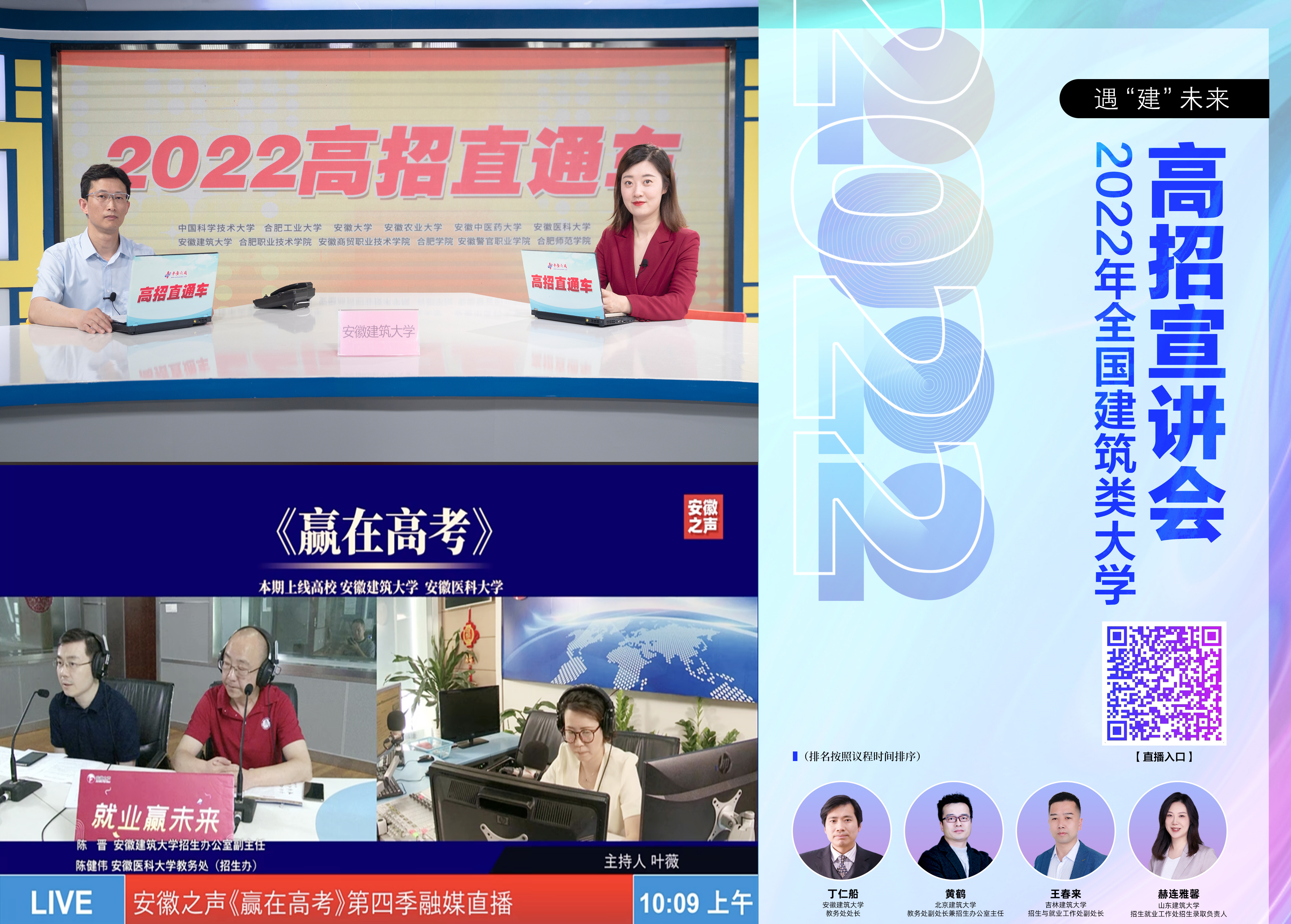 五月下旬,我校与中国建设教育协会普通高等教育委员会、北京建筑大学等单位联合发起首届“全国建筑类高校本科招生线上宣讲会”,在百度、今日头条、学习强国、央视频等多家全国性媒体同步播出,高峰访问量达33万人次,极大丰富宣传资源,有效扩大学校的社会影响力。