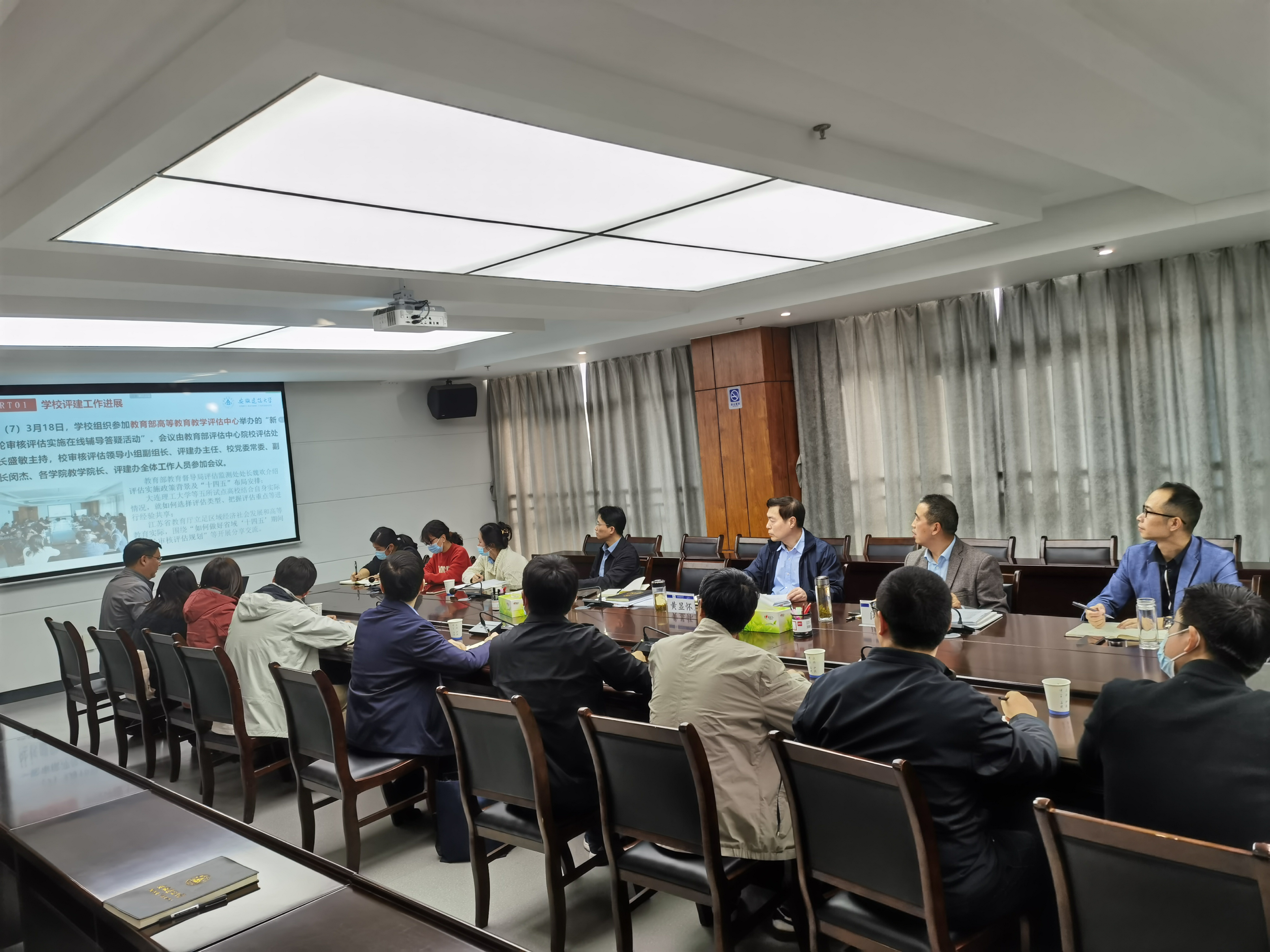 评建办负责人、教务处副处长马巍结合任务分解、工作进展、学习培训和自评报告等方面,对当前审核评估工作取得的阶段性成果和存在的问题进行了汇报。