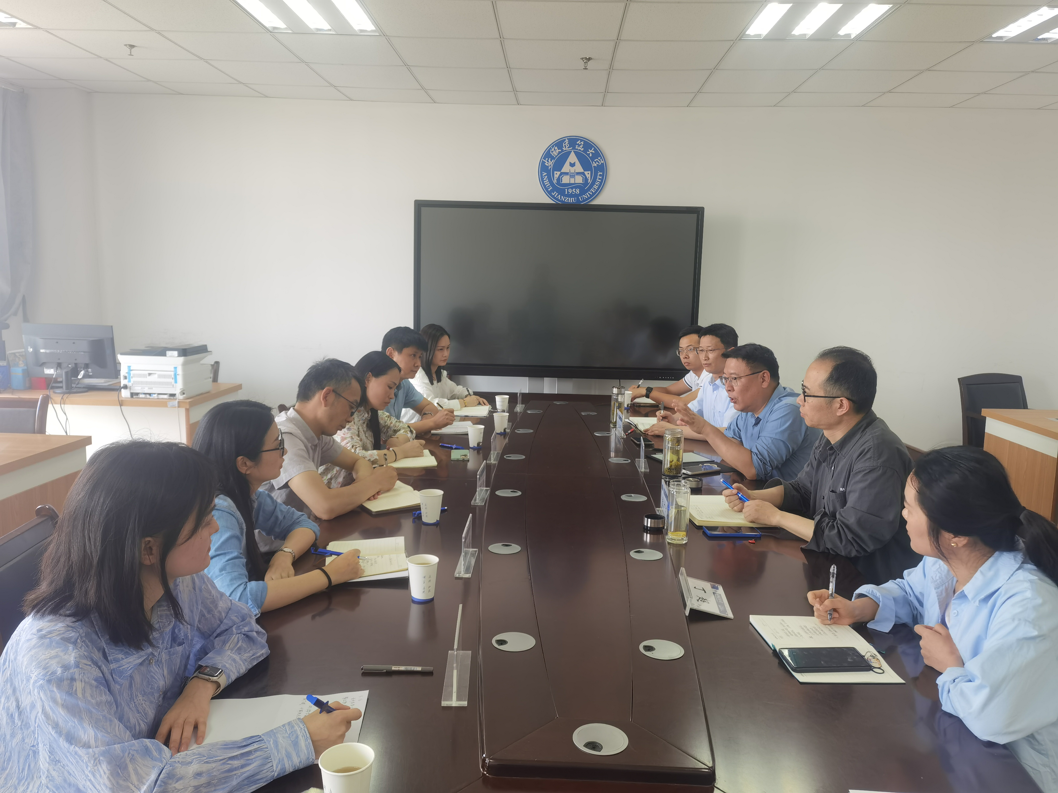 本网讯 5月16日,安徽职业技术学院教务处副处长刘磊、安徽城市管理职业学院教务处副处长葛琼应邀到校交流教学管理和专升本联合培养工作。教务处负责人马巍、张广斌、葛立新参加座谈,座谈会由葛立新主持。