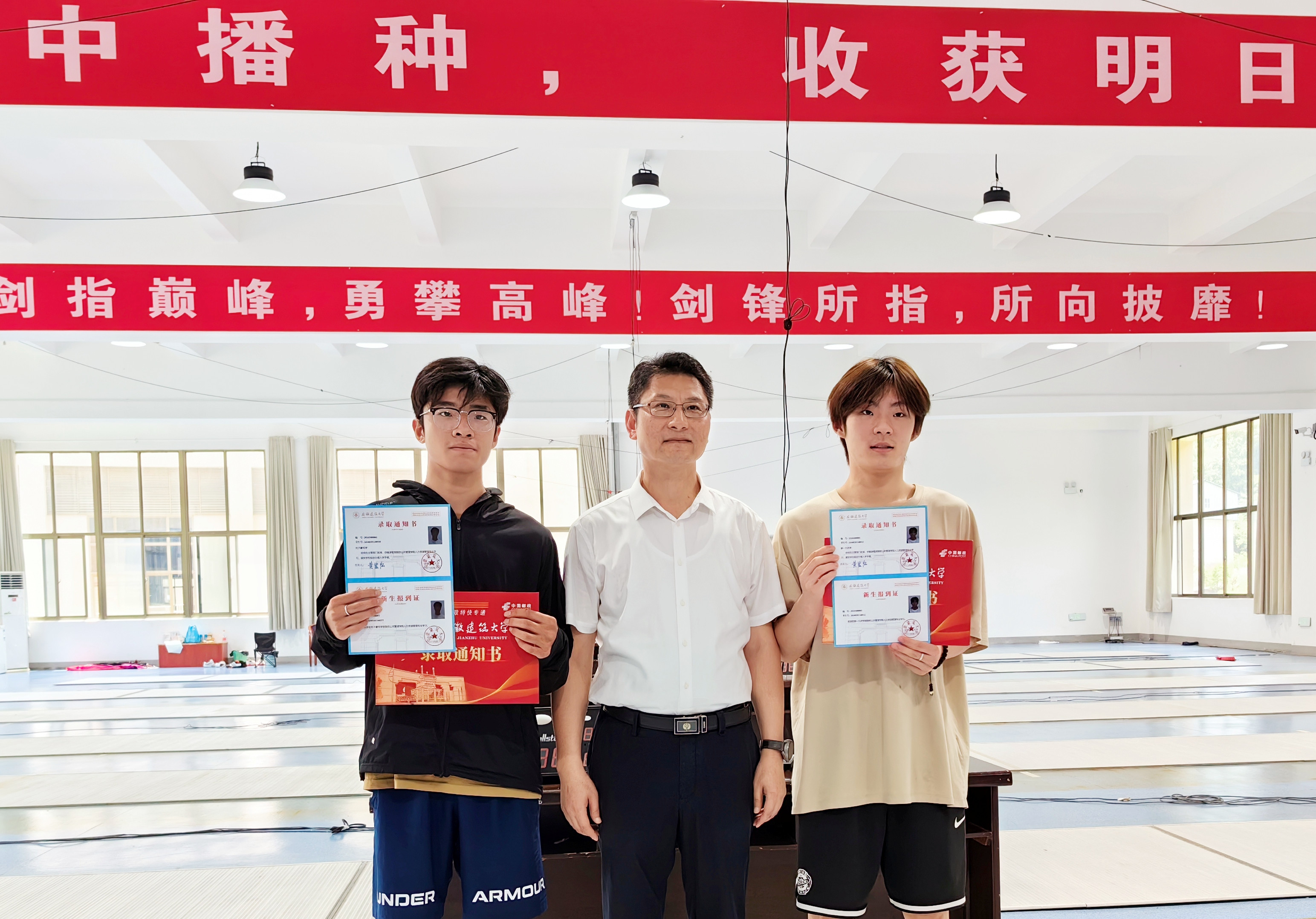 本网讯 8月6日,校党委书记马文革率校办公室、教务处、体育部负责人,赴安庆市岳西县石关国家体育训练基地,看望我校高水平运动队员和校友,为2024级新生代表颁发录取通知书。